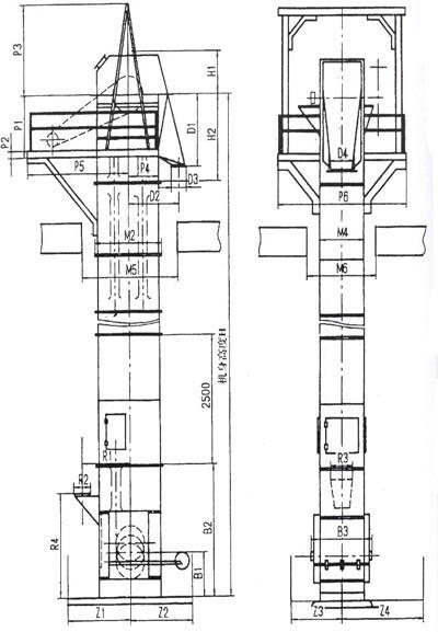 NE斗式提升機(jī)外形結(jié)構(gòu)圖: